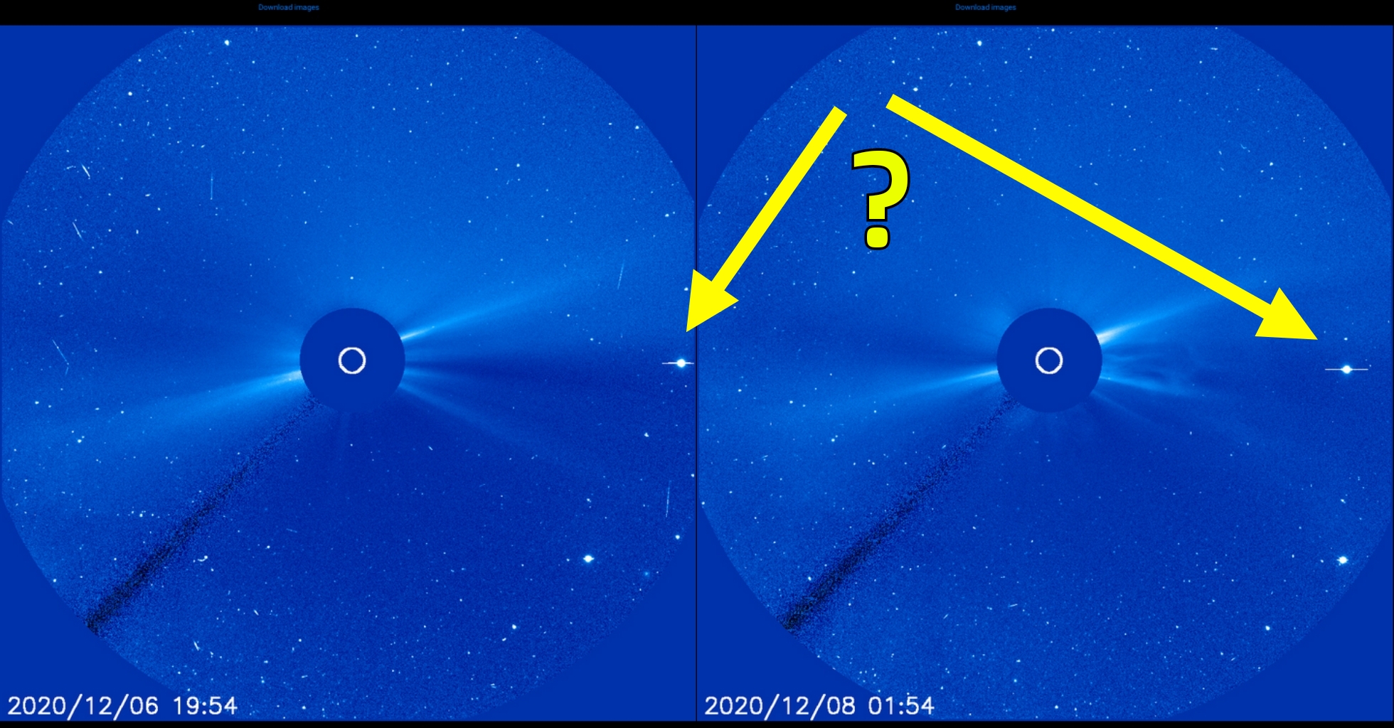 Vancanneyt Sander Administrator December 28, 20204 yr 13 uren geleden, 4rch0s112 zei: somebody told me it would be venus or mercury ..but i dont know..it goes from right to left..kind of the wrong way then ... as mentioned in the previous comment it was Mercury. Venus and Mercury appear often in the LASCO images. It’s not the wrong way, solar images are always mirrored with east being west and west being east.